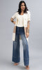 Cardigan lungo girocollo con fascia centrale. Colore in contrasto e tasche a toppa. Maniche lunghe dritte.